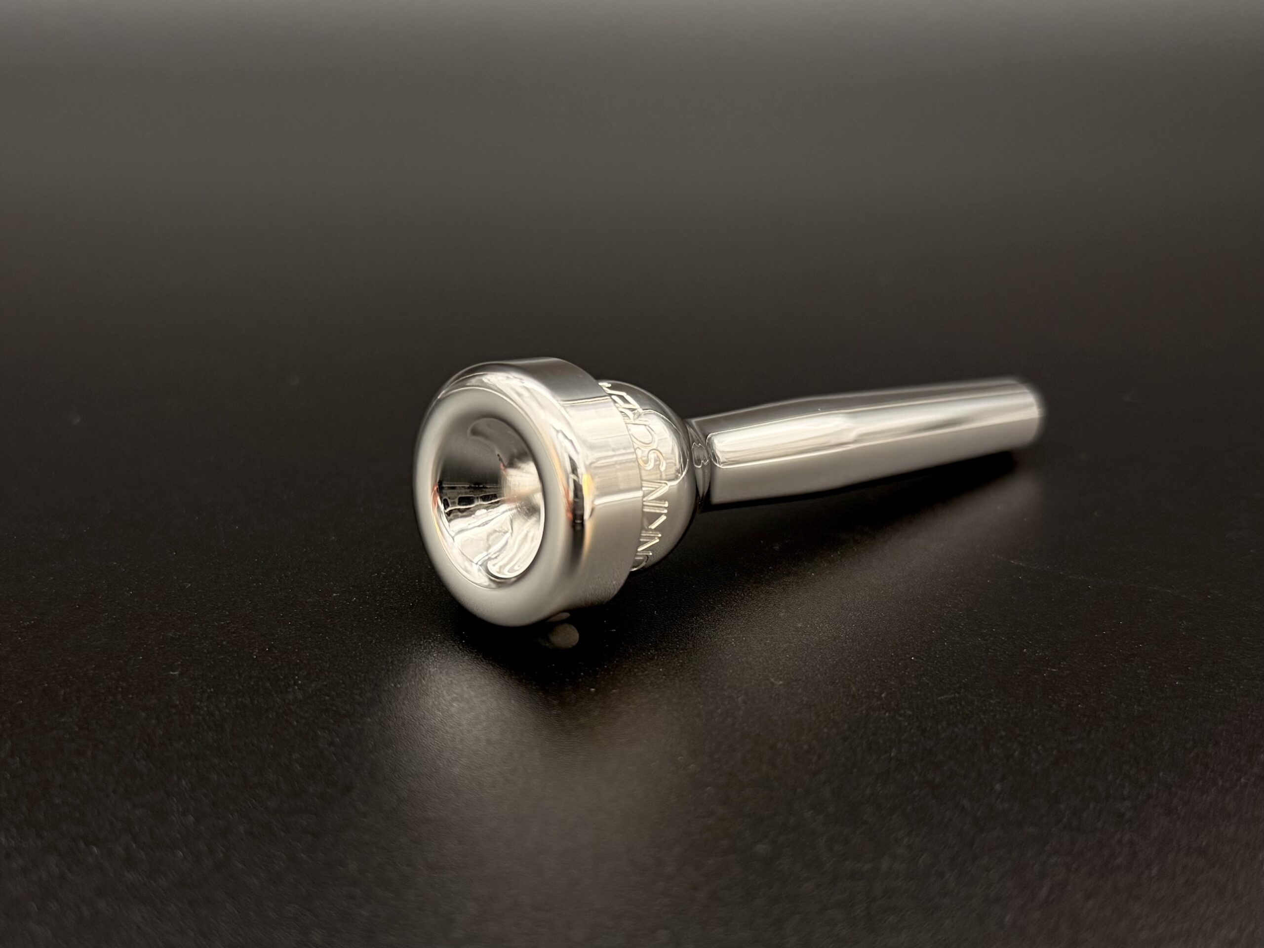 The Funkin Screamin has a wide, medium flat rim that is rounded on the inside. It’s a comfortable rim, and wide enough to offset lip swelling. The inside rim diameter is a small 0.590″, and there is a high alpha angle going into the cup, but there’s no undercut for chop room. This rim will feel just as small as it truly is. The cup is a shallow V, the throat is a standard #27, and the backbore is the Legends S. This mouthpiece is a variation of the legendary “Holy Grail” mouthpiece with the same rim and cup shape, but with the smaller inside rim diameter for those serious commercial and high note players. If you’re that power player who wants to peel paint off the walls, the Funkin Screamin is just right for you!